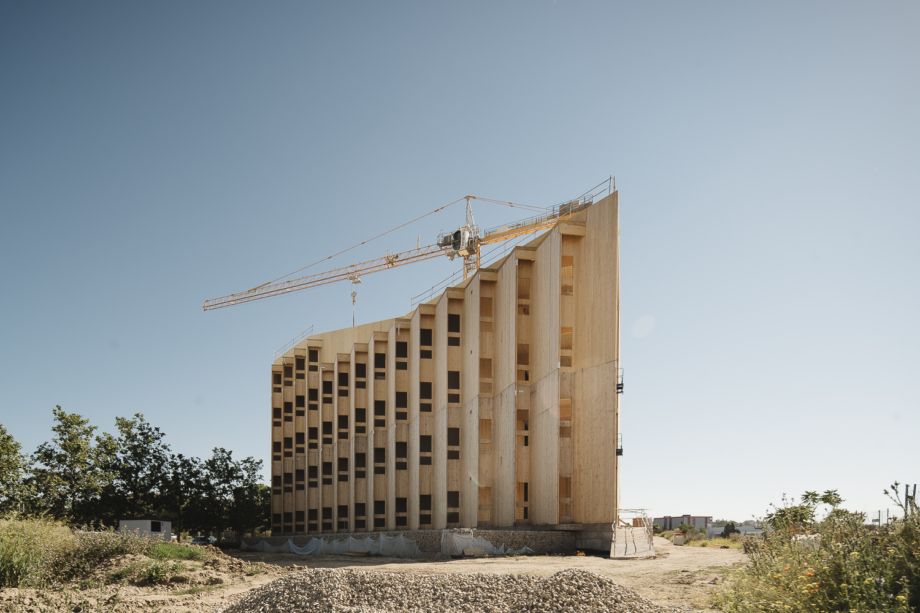 La edificación con madera empezó a levantarse el 15 de enero y en cuatro meses y medio tenían ya la envolvente de cinco plantas