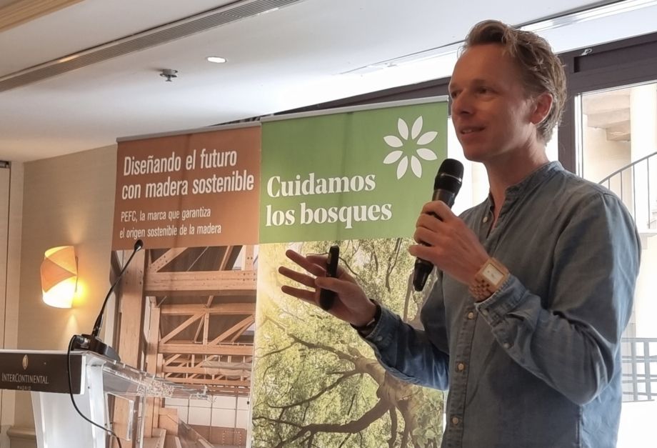 Pablo van der Lugt, arquitecto y doctor por la Universidad Técnica de Delft (Países Bajos) recordó a los casi 150 asistentes a los “Tomorrow’s Timber Talks”, presenciales y on line, que “casi el 40% de las emisiones de carbono a la atmósfera las genera la industria de la construcción; de este porcentaje, el 25% se relaciona con la energía operativa (calefacción/refrigeración) y el 15% con las emisiones de CO2 de los materiales de construcción como el acero y el hormigón”.