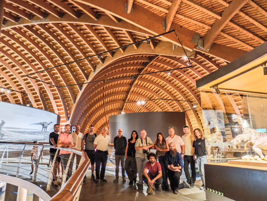 El segundo día empezó con la visita al Museo del Jurásico de Asturias (MUJA) en Lastres. Presenta una cubierta muy singular que representa una gran huella de dinosaurio realizada en madera laminada encolada de picea. Julio Vivas, de la empresa Media Madera y docente del Máster Construcción con Madera UPM, explicó el diseño, fabricación, transporte y montaje de la cubierta de madera realizada en 2001. La pieza de mayor luz tiene 60 m de longitud y por logística fue transportada en 3 trozos. Además, al encontrarse a la orilla de la mar y a 155 m de altitud, las cargas de viento fueron muy considerables tanto en fase de montaje como una vez en servicio. Nuestro agradecimiento a Marta Molleda y a todo el equipo del MUJA por la visita guiada con las magníficas explicaciones sobre los dinosaurios. Además, agradecemos a la Consejería de cultura del Principado de Asturias la concesión de gratuidad para realizar esta visita técnica.