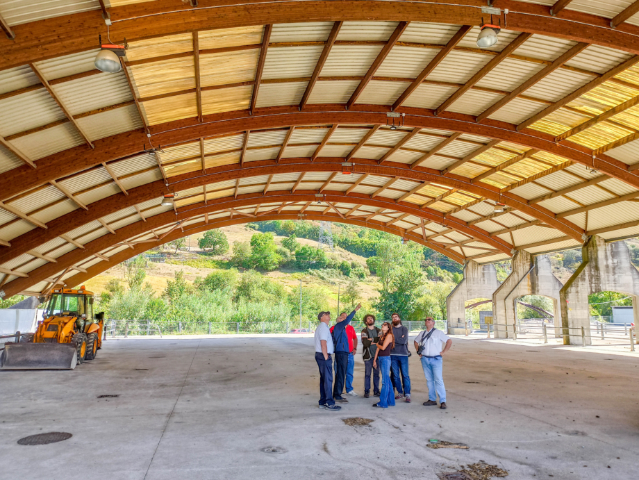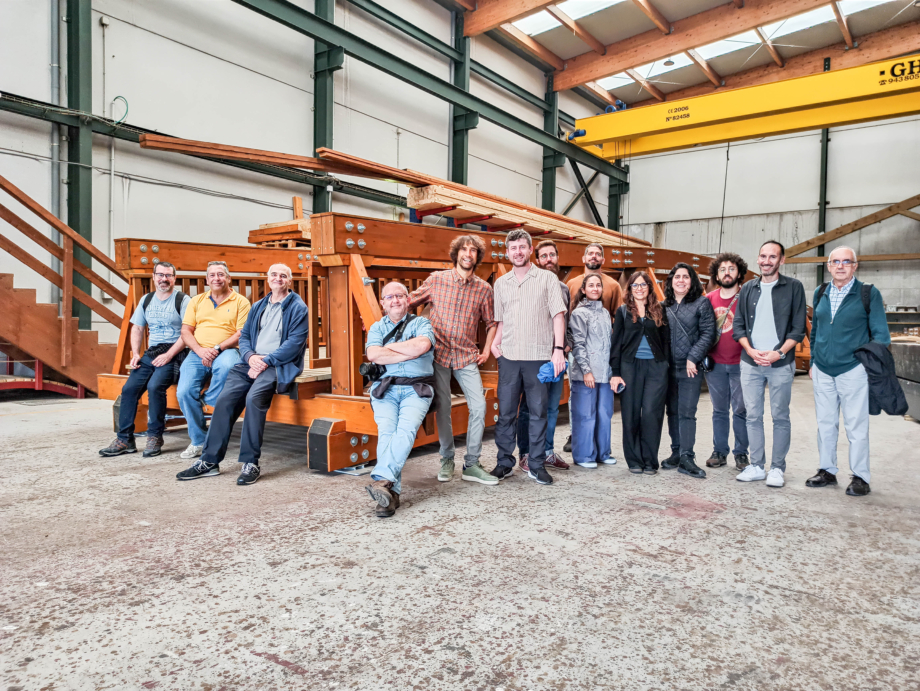 Las instalaciones de Media Madera en el polígono industrial de Tabaza II fue la siguiente parada. Allí, Julio Vivas explicó todo el proceso de diseño, cálculo, fabricación, transporte y montaje de pasarelas de madera. La madera más utilizada para su ejecución es la madera laminada encolada de pino silvestre de clase resistente GL30h.