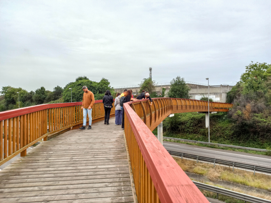 Pasarela peatonal sobre la autovía A8 en Nuevo Roces en Gijón, ejecutada en 2020, tiene 292 m de longitud dividida en 19 tramos de viga recta y una pendiente máxima de 6%. Antes de su entrada en servicio, fue sometida a pruebas de carga dinámicas por los expertos del CETEMAS.