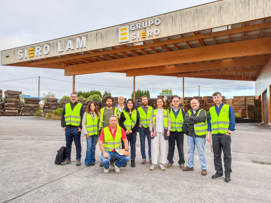 La primera visita del cuarto día, fue al Grupo Siero en Argüelles, esta empresa, que agrupa Maderas Siero y Siero Lam, centra su actividad en la madera de castaño. Susana Martínez explicó todo el proceso desde el parque de troncos, aserrado, secado, producción de pellets, fabricación de madera laminada de castaño y otros productos derivados de la madera, así como sus nuevas instalaciones de almacenamiento. Desde el año 2009, producen madera laminada encolada de castaño pudiendo alcanzar una clase resistente GL30c.