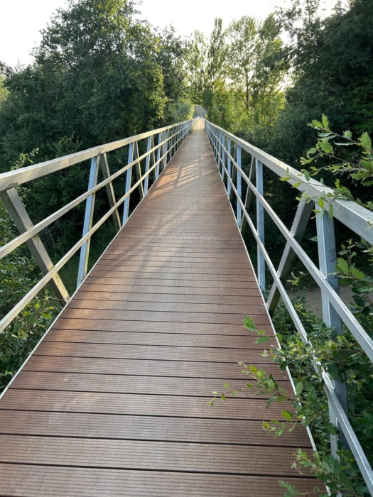 Con una anchura total de 1486 mm, la pasarela no solo cumple una función de conectividad en un espacio natural protegido, sino que también se convierte en un ejemplo de construcción respetuosa con el medio ambiente.