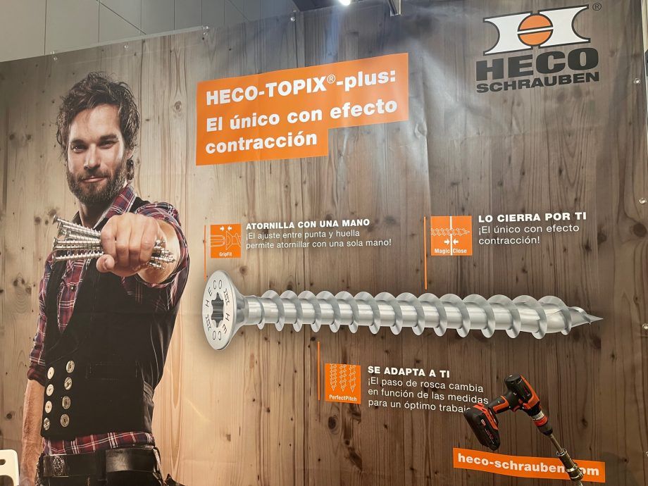 HECO-TOPIX® es un tornillo único en el mercado. “El único con efecto contracción -asegura Joan Ramón Calls, Area Manager de la filial de HECO SCHRAUBEN en España- El ajuste entre punta y huella permite atornillar con una sola mano, y el paso de rosca cambia en función de las medidas para un óptimo trabajo”.