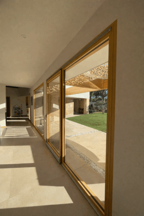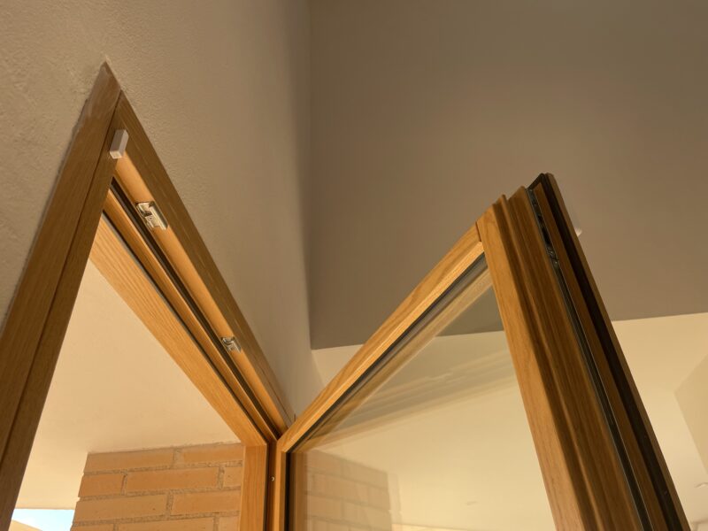 ISCLETEC ha diseñado todos los cerramientos con su perfil Iscletec78, en madera de roble natural protegida con aceite interior y barniz incoloro exterior, que eleva la nobleza de la textura y tacto del roble. Todos los tratamientos son sostenibles, y con la alta calidad y durabilidad firmados por Sikkens.