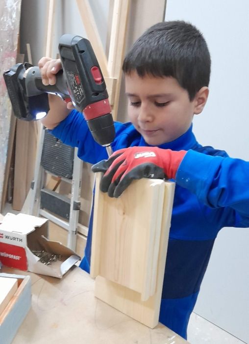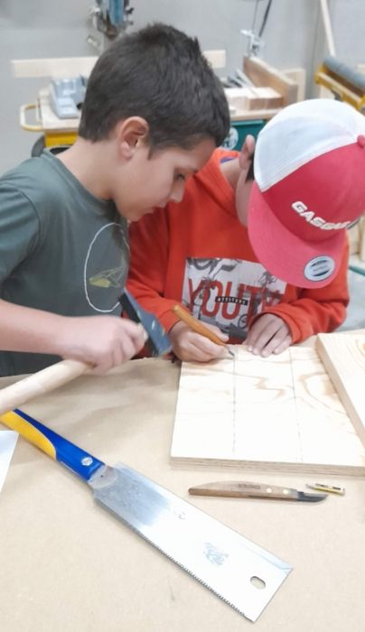 Desde hace años, Ainelda trabaja con niños y adolescentes para acercar la carpintería de manera divertida. En sus talleres y actividades extraescolares, los niños y niñas aprenden a trabajar con la madera como material sostenible, a utilizar herramientas adaptadas a su edad y a descubrir la satisfacción de fabricar objetos con sus propias manos.