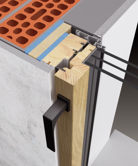Magis40 contribuye a una alta eficiencia energética empleando madera que no necesita mantenimiento gracias a la protección exterior de aluminio. Esta perfilería minimalista en madera-aluminio está disponible para balconeras y correderas elevables de grandes dimensiones.