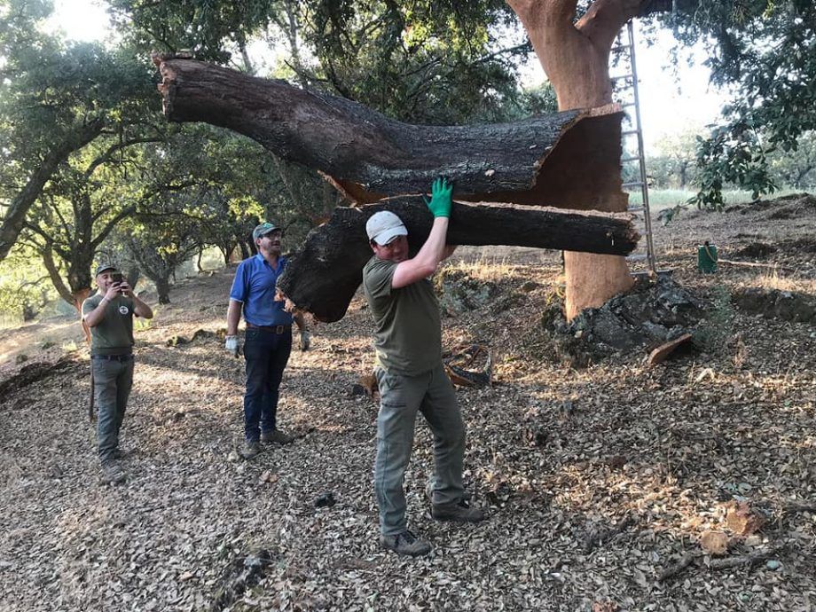 Jiménez es capataz de una cuadrilla de descorche desde hace 18 años, aunque en el oficio relacionado con el corcho lleva desde hace 24 años, ya que antes hizo las labores de mozo de arriero. “La cuadrilla para mí son todos amigos y compañeros. Hay que estar cómodos trabajando, llevamos juntos muchos años. Nos ayudamos unos a otros y no nos sentimos más importantes unos que otros”.