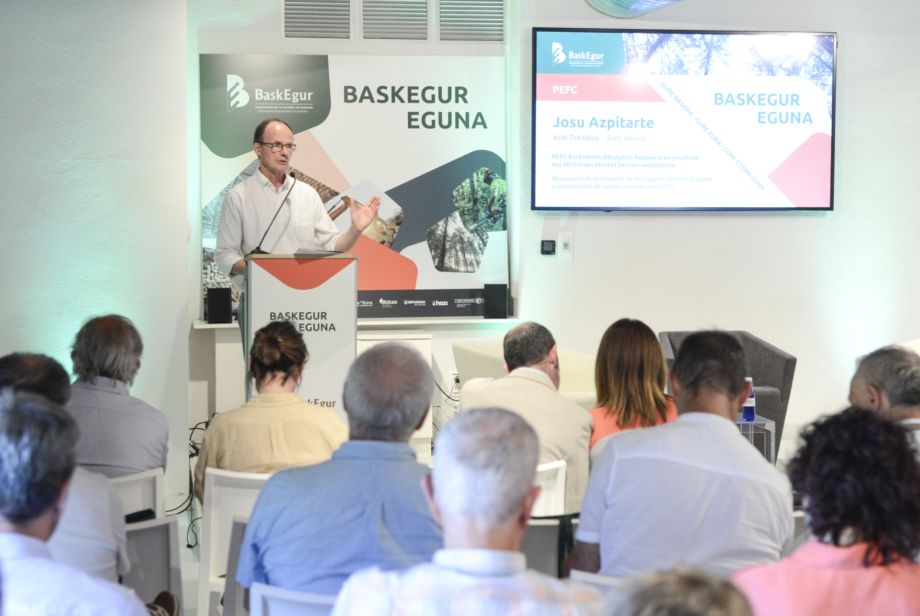 Josu Azpitarte presentó la nueva campaña de comunicación sobre gestión forestal sostenible en Euskadi. Su objetivo principal es “tratar de explicar desde nuestro punto de vista, desde cada uno de nosotros, lo que es y lo que representa la gestión forestal sostenible”, comentó. Una batería de mensajes dirigidos a un amplio espectro de la sociedad, incluyendo los centros educativos, empresas, medios de comunicación, silvicultores, rematantes y trabajadores del sector y usuarios de productos forestales.