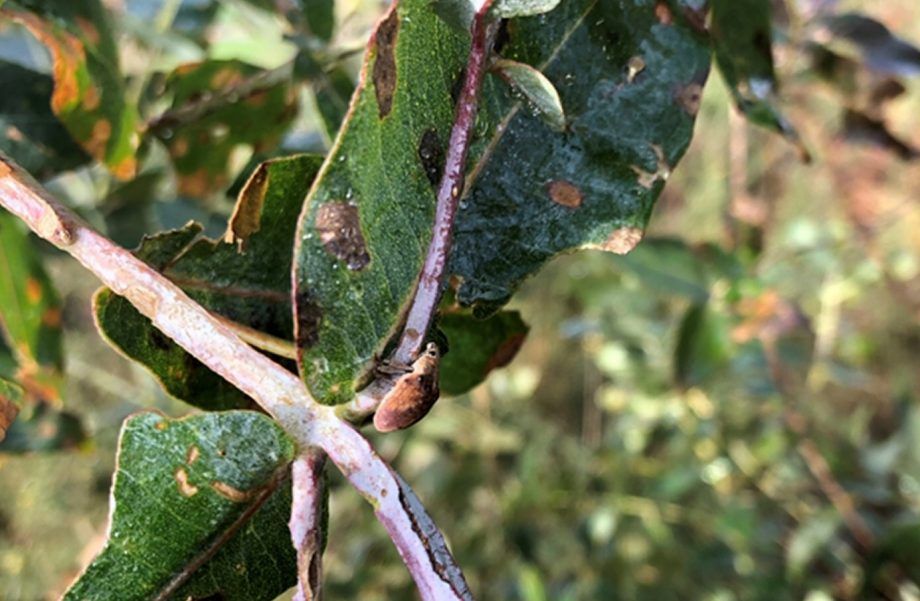 Este año 2020 se ha notado una disminución respecto al año 2019 en el grado de defoliación y en la evolución de la plaga tanto en adultos, larvas y ootecas.