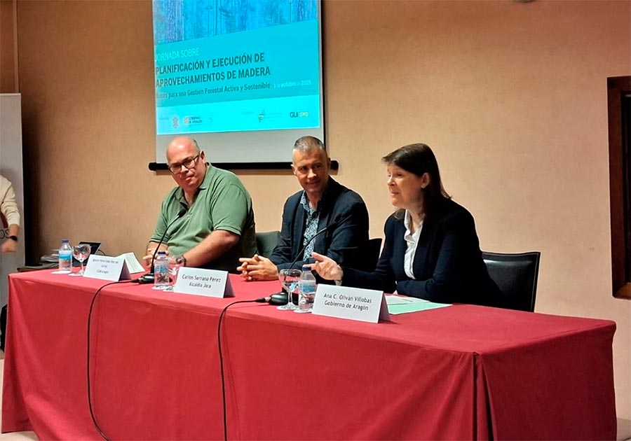 El decano del Colegio Oficial de Ingenieros de Montes en Aragón, Ignacio Pérez-Soba, recordó que la extracción de madera en España es muy inferior al crecimiento natural, lo que incrementa el riesgo de acumulación de combustible. En la misma línea, Enrique Arrechea, jefe de Servicio de Planificación y Gestión Forestal del Gobierno de Aragón, apuntó que mientras los bosques aragoneses crecen en torno a 2 millones de m³ de madera al año, los aprovechamientos apenas alcanzan los 185.000, lo que exige un impulso decidido a la selvicultura para reducir la vulnerabilidad de los montes frente al cambio climático.