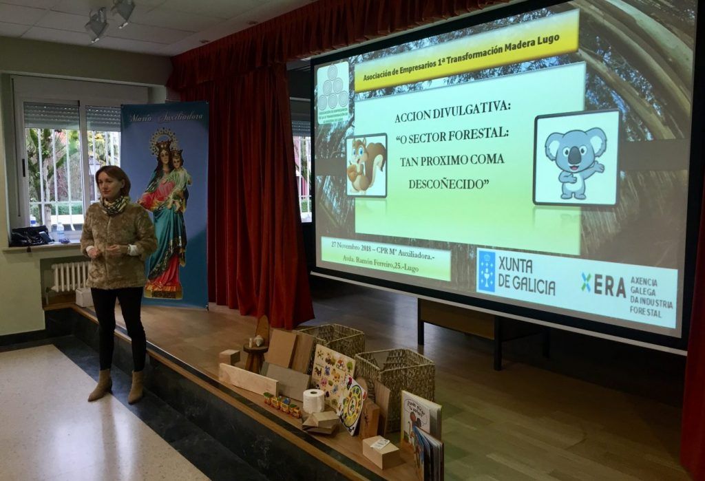 La Asociación de Empresarios de la 1ª Transformación de la MADERA DE LUGO ha realizado varias jornadas de divulgación del sector forestal en colegios de Infantil y Primaria de la provincia de Lugo. Dichas acciones, que se desarrollaron el CEIP Álvaro Cunqueiro Mora de Mondoñedo, CPI de Castroverde, CPR María Auxiliadora de Lugo, y CEIP Antonio Insua de Villalba, pretenden informar a los escolares del sector forestal desde un punto de vista industrial, exponiendo las bondades de este sector para Galicia y para la sociedad en general.