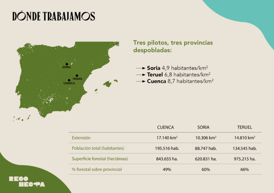 El proyecto RECONECTA da un nuevo paso en su objetivo de reactivar el medio rural forestal y ha desarrollado una serie de materiales divulgativos y técnicos sobre las actividades más rentables y sostenibles en terrenos forestales abandonados o infrautilizados. Este es un nuevo paso en su búsqueda por recuperar la gestión de estos espacios, para garantizar su conservación y puesta en valor. El proyecto arranca en Cuenca, Soria y Teruel pero su idea es replicar las soluciones eficaces en todo el territorio nacional.