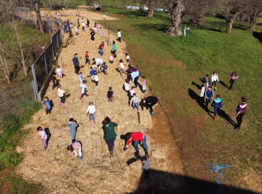 Y ya que se proyecta… ¿por qué no hacerlo? Así es como el colegio se puso manos a la obra y contrató a Arbolar Bosques Urbanos para la dirección del proyecto y los talleres de ciencia y bosques realizados a los niños y niñas de infantil y primaria y al equipo docente. El siguiente curso escolar el centro adoptó como proyecto educativo la realización del bosque, y durante todo un curso, todas las materias tanto en infantil como en primaria giraron en torno a éste y al proceso que hicimos entre todos: talleres, replanteo y señalización, preparación del terreno, enmiendas orgánicas para mejora de suelo, plantación y acolchado, aula verde, hotel de insectos y mantenimiento.