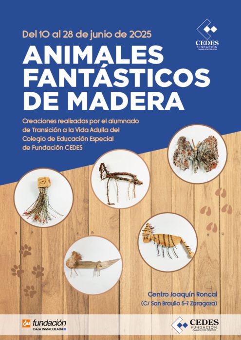 La planta calle del Centro Joaquín Roncal de Zaragoza se ha convertido en una ventana a un mundo de naturaleza e imaginación gracias a la exposición “Animales fantásticos”, donde se han mostrado 40 esculturas de madera realizadas por los alumnos del curso de Transición a la Vida Adulta del servicio educativo de Fundación CEDES.