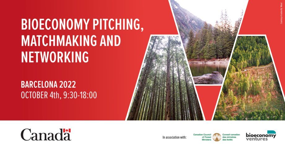 La Embajada de Canadá y el Consejo Canadiense de Ministros Forestales colaboran con BioeconomyVentures para organizar una jornada de Pitching, Matchmaking y Networking el próximo día 4 de octubre (9.30-18.30 CET).