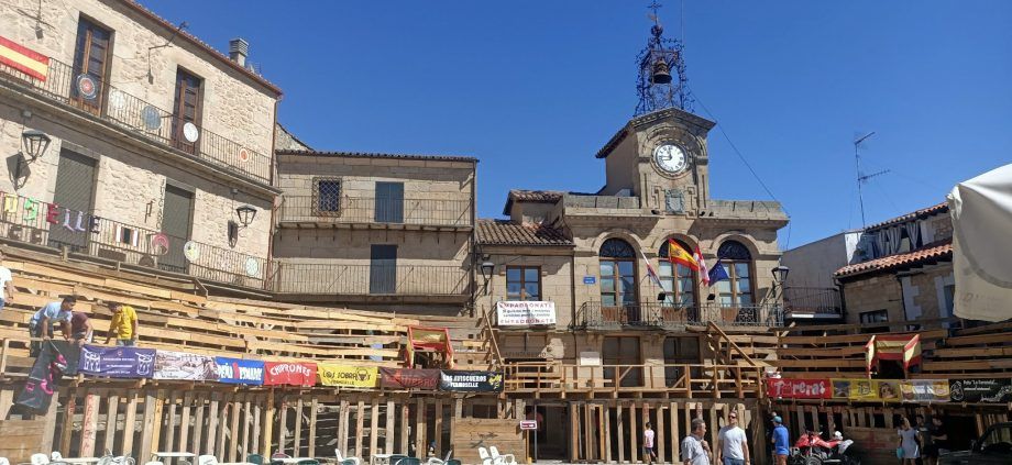 En esa plaza única, y que es una verdadera obra de arte, desembocan los tradicionales encierros taurinos de la villa, que datan del año 1523, cuando ya se corrían encierros por las calles. Y es que la Plaza Mayor durante el mes de agosto, se convierte en protagonista absoluta de las fiestas de San Agustín. Los edificios de su perímetro se convierten en pilares de la plaza de toros donde terminan los encierros taurinos, contando con un escenario para celebrar diferentes actividades como verbenas, muestras de baile tradicional, concursos…. Una vez terminan las fiestas, la plaza de toros de madera es desmontada para devolver la vista a su estado original.