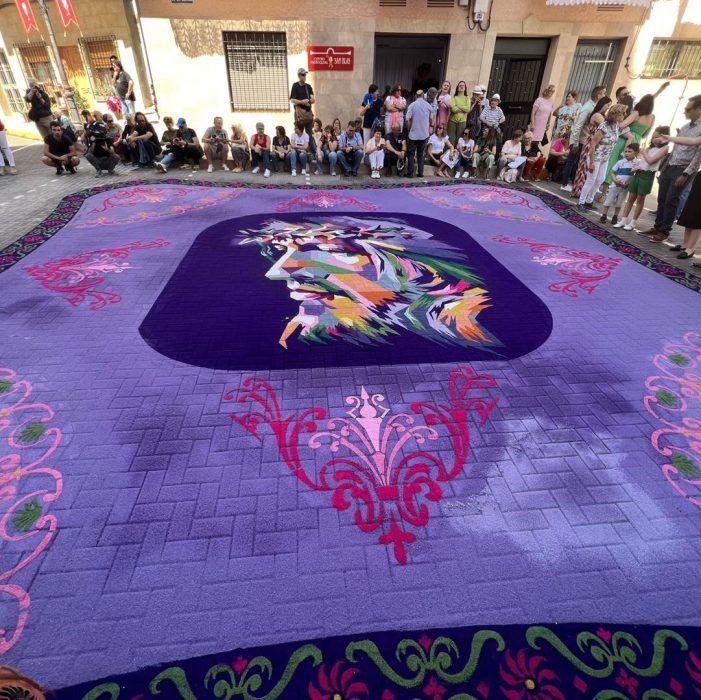 La localidad de Elche de la Sierra (Albacete) volvió a vestir sus calles de color, magia e ilusión gracias a sus alfombras echas con serrín. Una festividad que se realiza con motivo del Corpus Christi y que fue declarada de Interés Turístico Nacional y Bien de Interés Cultural. Ahora, lo que buscan, y lo harán de cara a 2024, es el reconocimiento de la UNESCO como Patrimonio Cultural Inmaterial. Esto último bajo la denominación: “El arte de crear alfombras de flores y otros elementos naturales”, integrada por varias asociaciones de diversos países relacionadas con el Arte Efímero.