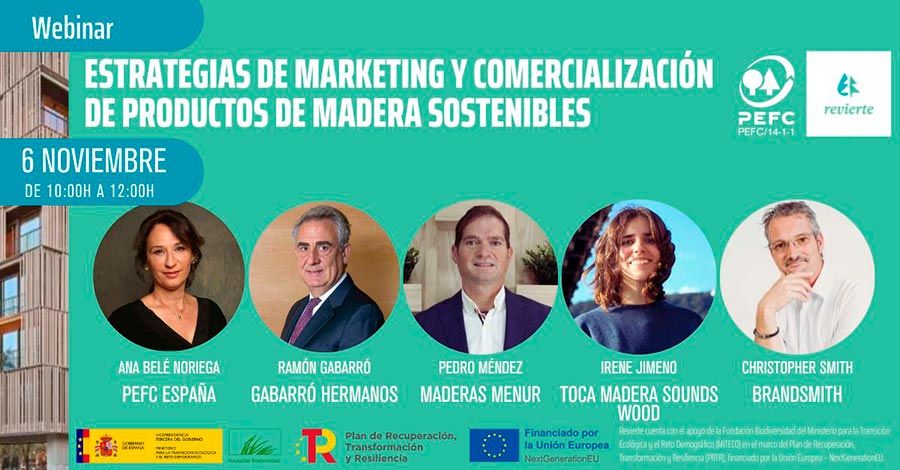 En el marco del Proyecto REVIERTE, PEFC organiza el webinar “Estrategias de marketing y comercialización de productos de madera sostenibles”, el próximo 6 de noviembre, de 10h a 12h, en formato online.