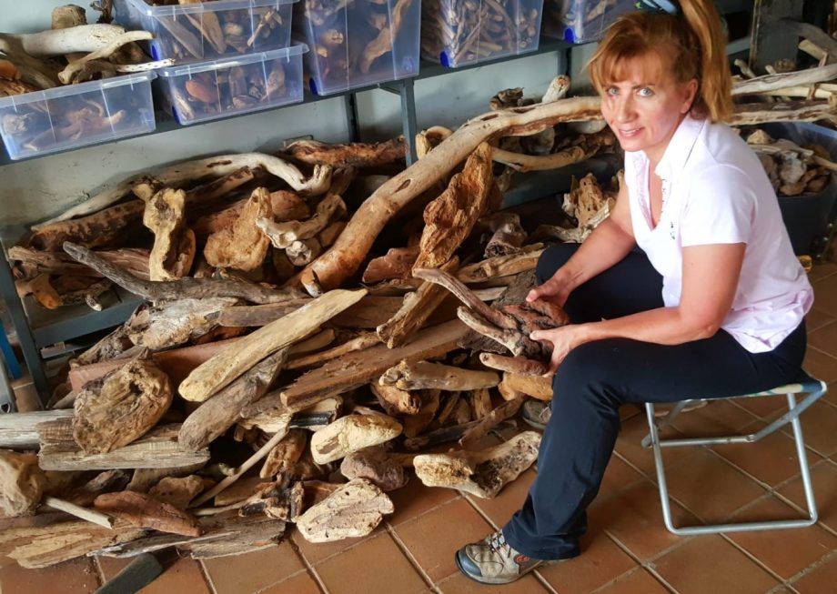 Fini recoge toda la madera que encuentra en las playas, como ella misma dice, “por mí me lo llevaría todo”. En sus paseos por la playa de San Juan de la Arena o de Ribadesella va recogiendo la madera y selecciona la que está mejor para hacer las piezas para las exposiciones. “La dejo secar y una vez seca estudio para qué puedo utilizarla. Otras veces ya sé para qué la quiero según la recojo en la playa”, asegura.