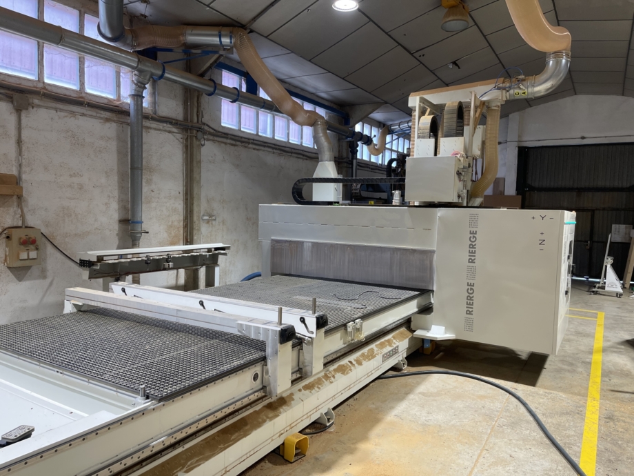 La carpintería de Lekunberri (Navarra) ha adquirido un centro de mecanizado RIERGE modelo EASYNEST / 5021-5 Evolution, impulsada por la necesidad de modernización y competitividad, reemplazando una máquina antigua, también del fabricante español. “Elegimos RIERGE por la robustez de sus centros de mecanizado y, en este momento, atraídos por su sistema dual con mesa y barras”, afirma Néstor Azpiroz, copropietario de la empresa. Esta configuración del CNC es fundamental para AZPIROZ, ya que les proporciona la flexibilidad necesaria para abordar una amplia variedad de trabajos, todos ellos personalizados. “Es fundamental su capacidad de sujetar firmemente tanto tableros grandes como piezas pequeñas y complejas”, añade el carpintero navarro.