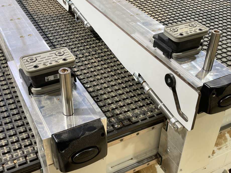 - Dimensiones: Mesa de 5100 mm x 2100 mm. Ha mecanizado piezas de hasta 5800 mm de largo, con capacidad potencial de hasta 6 metros en las barras. También permite trabajar anchos considerables (por ejemplo, una encimera de 1800 mm).