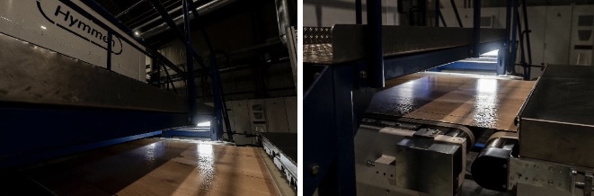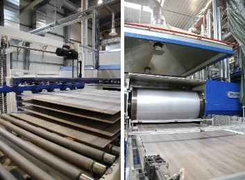 En su planta de Baruth, CLASSEN lleva muchos años confiando con éxito en la tecnología probada de Hymmen para la producción de superficies laminadas con estructura sincrónica. En este proceso, la imagen decorativa impresa digitalmente se prensa en una prensa de doble banda de tipo MFC, también suministrada por Hymmen, utilizando el método LLT (Liquid Layer Technology) para lograr una sincronización decorativa perfecta. La combinación de la impresión digital y el prensado estructurado garantiza una alineación exacta entre el diseño visual y la superficie táctil (véase la figura 1).