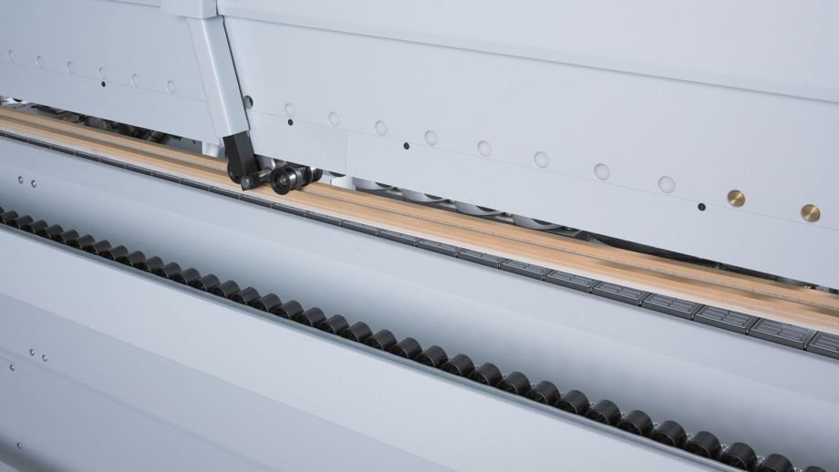 En la foto principal: Presión del rodillo superior tipo correa: el elemento de presión del rodillo superior, fabricado en acero con correa trapezoidal doble, proporciona la base para obtener la máxima calidad, ya que las piezas de trabajo se sujetan de forma óptima para su procesamiento.