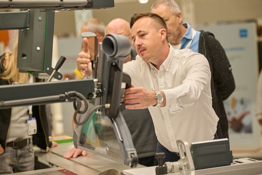 - Nuevos configuradores en línea: Los visitantes pudieron configurar las máquinas individualmente en el stand utilizando los nuevos configuradores en línea. Se podían combinar distintas configuraciones en directo y adaptarlas a necesidades específicas, desde el procesamiento de tableros hasta el de madera maciza. La herramienta demostró lo intuitivo, flexible y fácil de usar que es el proceso.