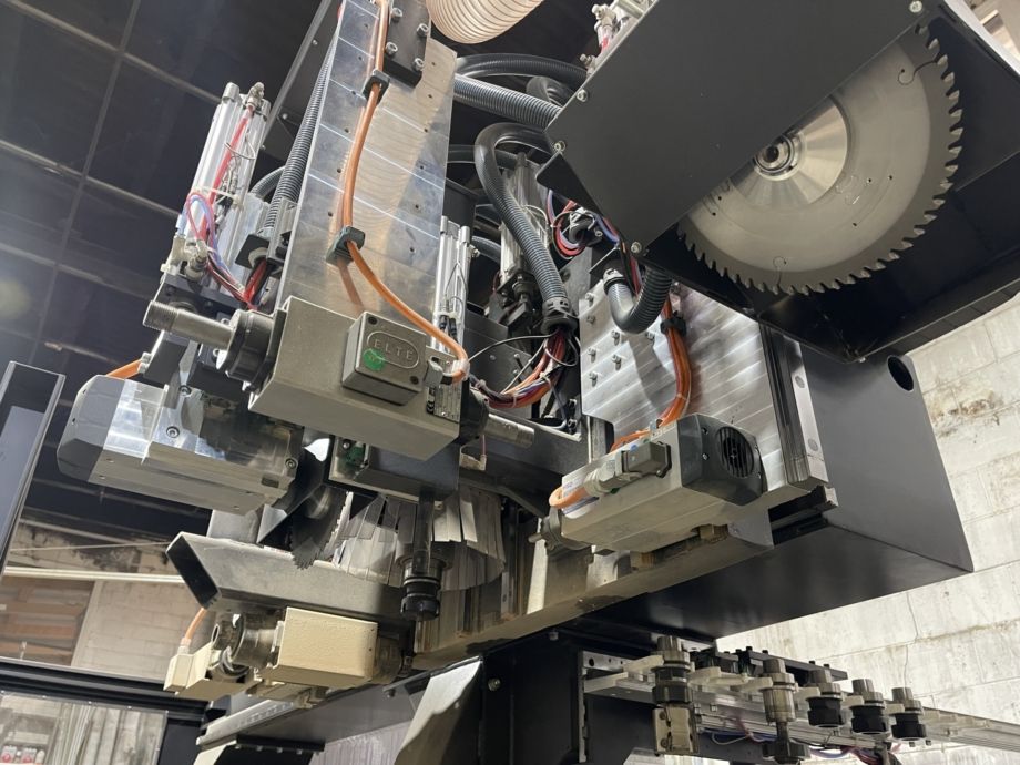 Esta nueva máquina acompaña a otra NT-DOOR de RIERGE que ha cumplido 25 años de servicio en PERE BARRIS. Es el mismo concepto, aunque con posicionamiento manual de la puerta y un sistema más sencillo para la colocación de los batientes. Pero ya con sensores para determinar el ancho de la hoja, motores para el pernio y la petaca, motor principal con el cambio de herramientas, y discos de corte recto e inclinado.