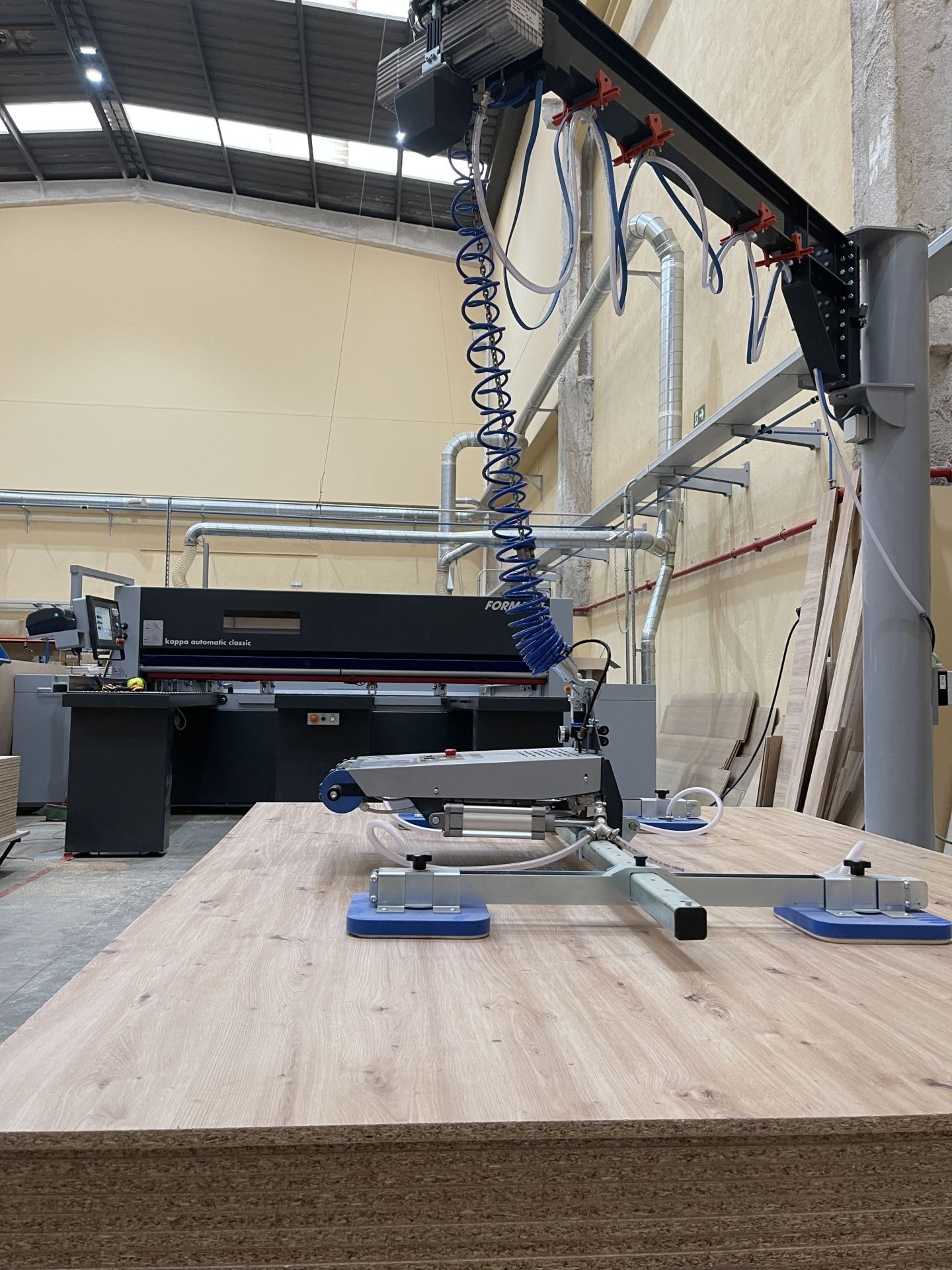 - D-Jet, un CNC para testas, bisagras, ranuras, etc., probablemente la más rápida en su rango en el mercado. Algo crucial por el alto volumen de trabajo en las testas.