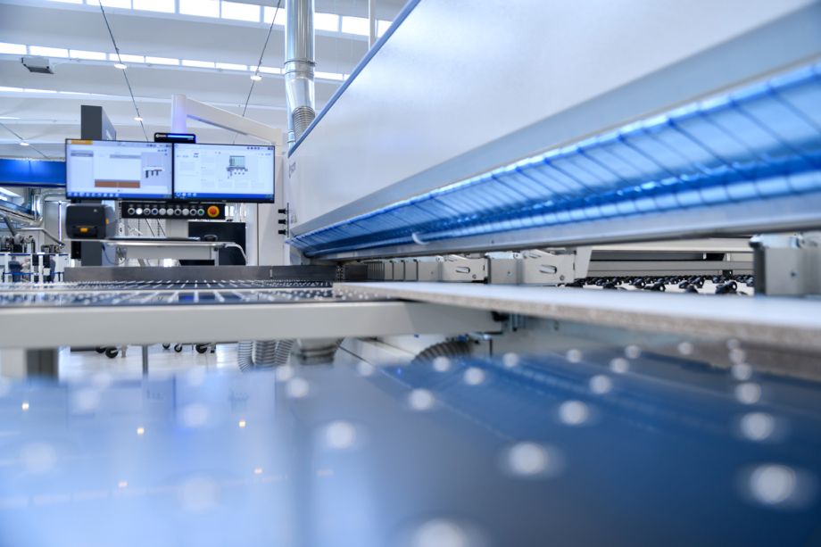 - Indicadores LED de carga delantera y trasera en presencia de mesa elevadora: un sistema inteligente de barras LED guía al usuario durante las fases de procesamiento para un control intuitivo y seguro de la producción. En la versión con mesa elevadora, el sistema guía al usuario para la carga correcta con carretilla elevadora de la pila de paneles y señala la necesidad de cambiar la pila.