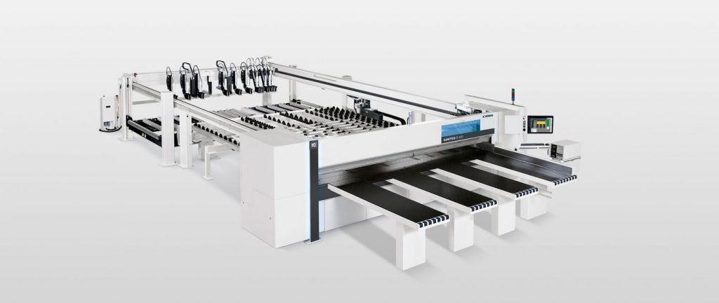 Con el modelo SAWTEQ B-400, HOMAG ofrece una sierra de tableros con carga automática que realiza el corte a la velocidad adecuada.