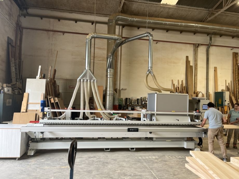 Para la empresa TRAZOS DECO supone dar un salto de calidad y producción para poder asumir nuevos retos, “una máquina ‘pesada’, con control de los grupos in situ (no solo por pantalla), para poder realizar ajustes mientras se mira cómo trabaja cada pieza en cada grupo, con programas memorizables para repetir trabajos con el ajuste predispuesto… en resumen hacer fácil el trabajo al operario”, explica Alessio De Stefani, quien acudió al montaje a supervisar la instalación.