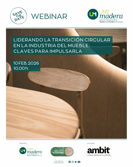 UNEmadera, conjuntamente con AMBIT Living Spaces Cluster, ha organizado un webinar dirigido a profesionales y empresas del sector del mueble y el hábitat con el que se pretende avanzar hacia modelos más sostenibles y competitivos.