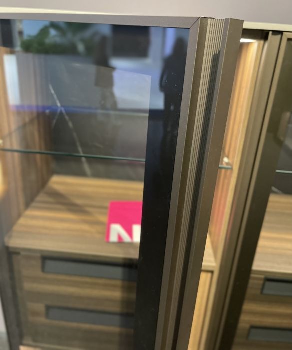 Las puertas permiten combinar vidrio y madera (vidrio en diferentes acabados), o incluso panel y porcelánico, ofreciendo al cliente una carta muy completa de posibilidades.
