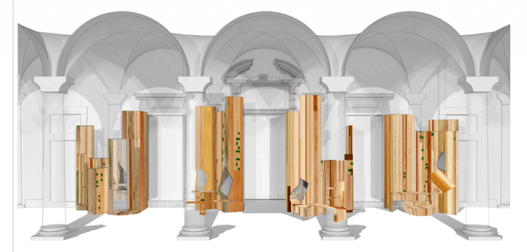 La forma física de esta instalación mostrará la transformación de la madera desde su forma más natural hasta sus acabados de ebanistería más delicados, mostrando cómo los muebles, en última instancia, proceden del bosque.