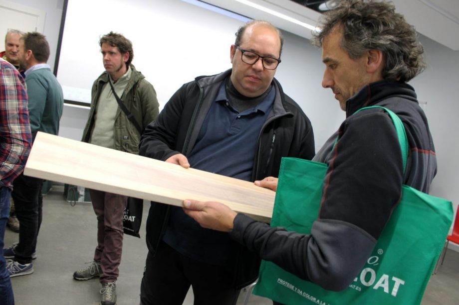 Dirigió la presentación Rubén Jaime Báez, técnico comercial de RUBIO MONOCOAT IBERICA, S.L., quien contó con la ayuda del distribuidor de la firma belga en Vizcaya desde hace dos años, MADERAS URKIA. Su gerente, Asier Peñas comenta: “Vizcaya es un territorio de madera -afirma-. Ahora este material está en auge, sobre todo en construcción. La madera es la base, que nos ofrece muchas cosas buenas. Pero su acabado es fundamental. Con RUBIO MONOCOAT estamos descubriendo otro mundo”. A su juicio, RUBIO MONOCOAT “aporta valor a la madera como material, al cliente final, al aplicador del aceite y, finalmente, al medio ambiente”.