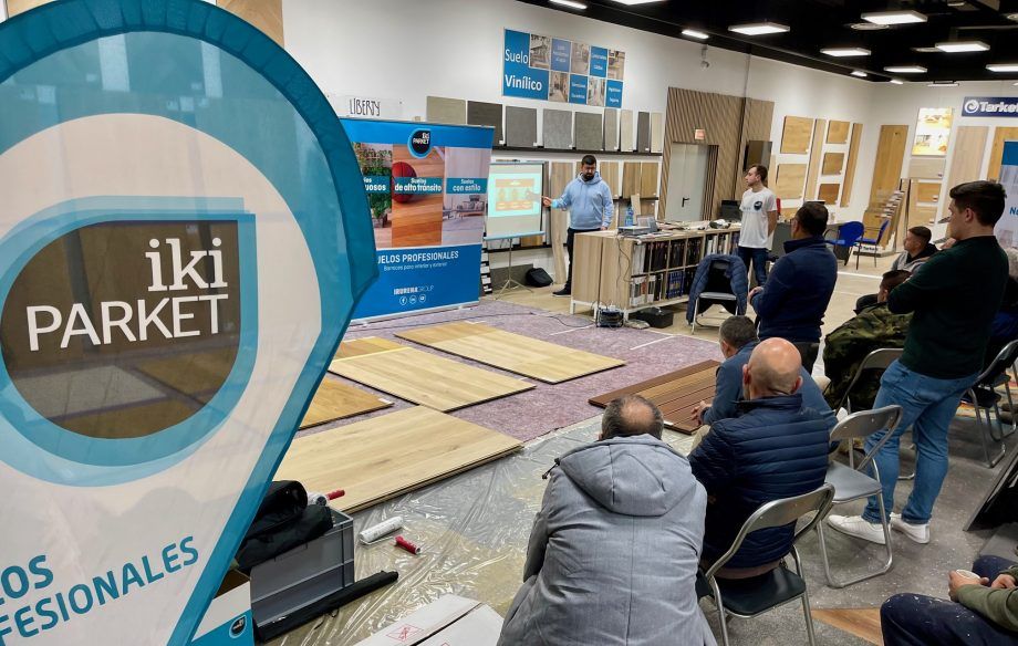 La pasada semana se celebró en JUMISA Revestimientos una jornada formativa de IRURENA Group, impartida por su técnico de I+D Arkaitz Garmendia, en la que se mostró a parquetistas madrileños las novedades de la gama de barnices al agua IKI PARKET.