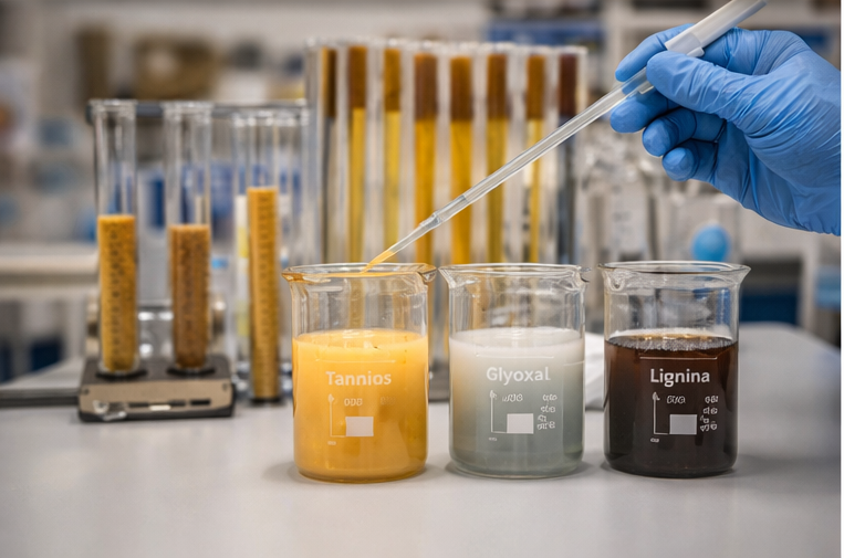 - Integración de taninos, glyoxal y lignina como bio-modificadores.