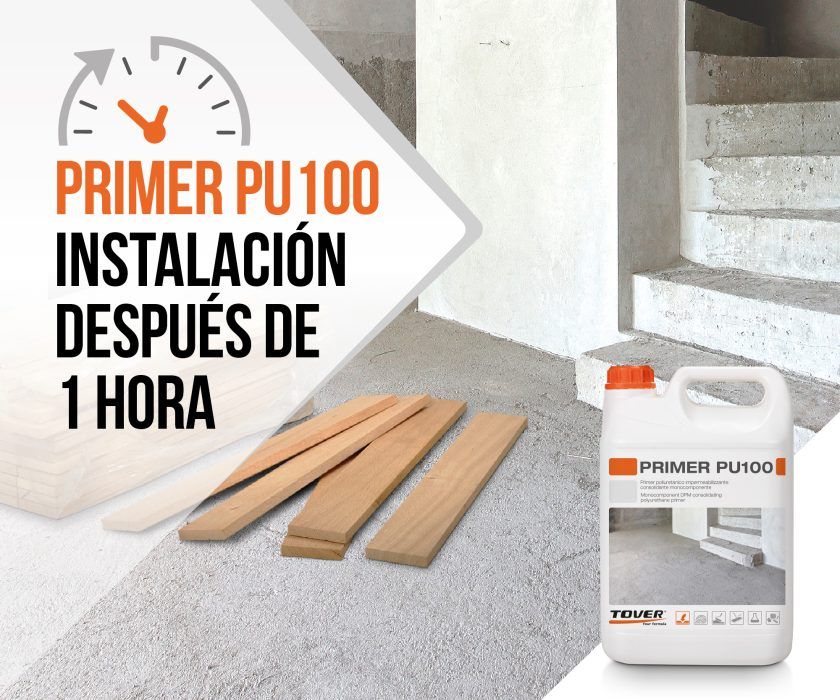 PRIMER PU100 es una imprimación de poliuretano de máxima cobertura, para consolidar e impermeabilizar, de TOVER.