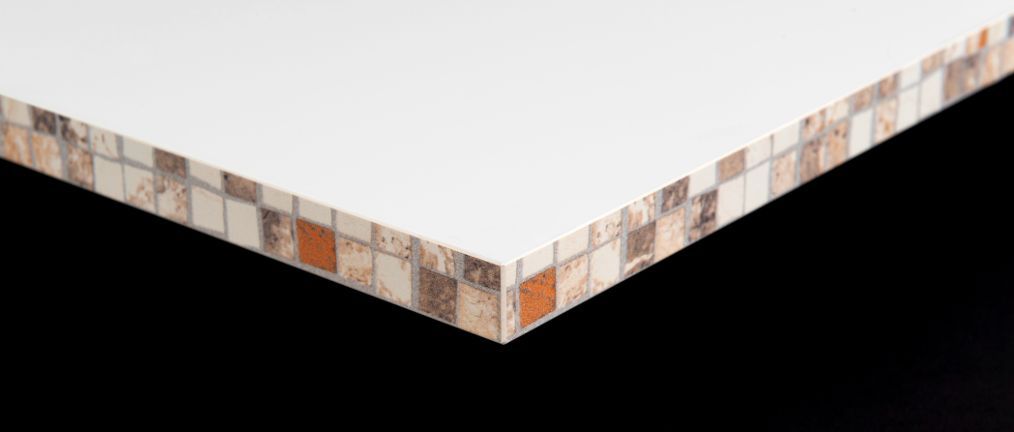 Una buena combinación es el canto mosaico de Cantisa con melaminas unicolores de tonos claros como el Bianco Zen de Transformad.