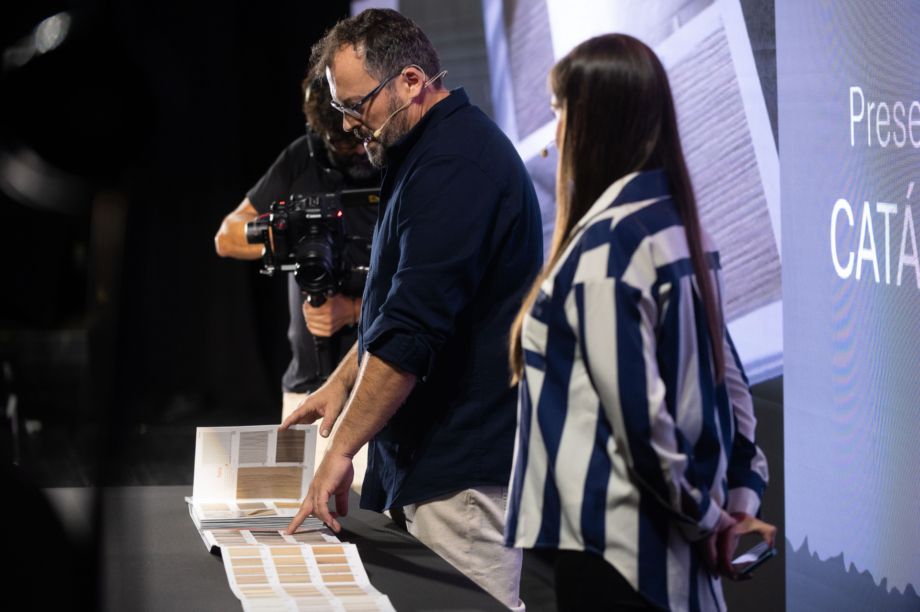 Uno de los pilares del evento fue la presentación de un nuevo catálogo, descrito por el CEO de la empresa, Miguel Marqués, como “el mayor y mejor pensado de la historia de Maderas Unidas”. No es una simple colección de páginas impresas. MADERAS UNIDAS reinventó el concepto, convirtiendo una pieza de marketing estática y unidireccional en una plataforma de servicio dinámica y bidireccional.
