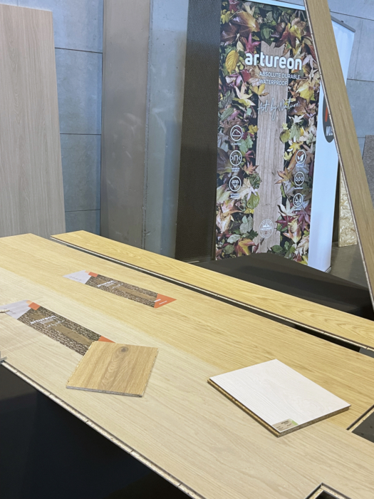 Entre sus productos más novedosos, destaca el lanzamiento del suelo laminado ARTUREON, un producto ecológico, resistente al agua y libre de PVC, que ahora incorpora como novedad un acabado en rechapado de madera, consolidando la apuesta de la firma por materiales de vanguardia que combinan rendimiento técnico con sostenibilidad y estética natural.