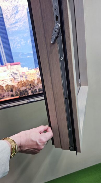 Un cerramiento que destaca por su diseño minimalista, innovador, donde sus perfiles estrechos maximizan la entrada de luz natural y crean un efecto visual elegante y sofisticado. Un diseño que elimina cercos visibles, consiguiendo una estética muy limpia y ligera y sin tapajuntas destacando, además, su alto rendimiento aislante (térmico y acústico), gracias a su doble o triple acristalamiento. Está trabajada con madera al interior (un 95% del perfil) y aluminio al exterior.