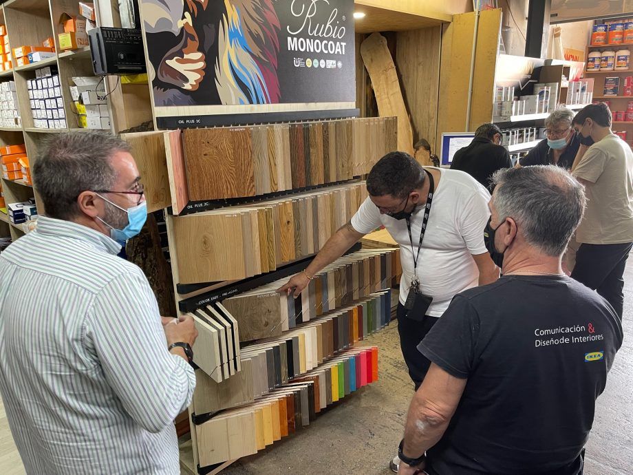 Esta vez ha sido el turno de Mallorca. RUBIO® MONOCOAT IBERICA cuenta ya con un expositor de su gama de más de 40 colores en MADERAS SINTES, y lo ha estrenado celebrando en las instalaciones de la prestigiosa firma balear una semana de puertas abiertas, realizando demostraciones a los profesionales que se han acercado a comprobar que OilPlus 2C y WoodCream son una gran elección para el cuidado y la decoración de la madera. Con RUBIO® MONOCOAT: