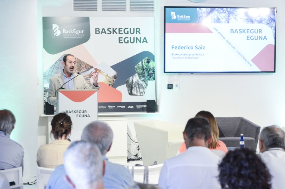 “La colaboración público-privada marca el camino a seguir para el desarrollo y la consecución de los objetivos del sector”, introdujo en su discurso inaugural del Baskegur Eguna el presidente de esta asociación profesional representativa de todo el sector forestal y de la madera en el País Vasco, Federico Saiz, quien destacó la estrecha colaboración ya existente con entidades como Hazi y el Gobierno Vasco.