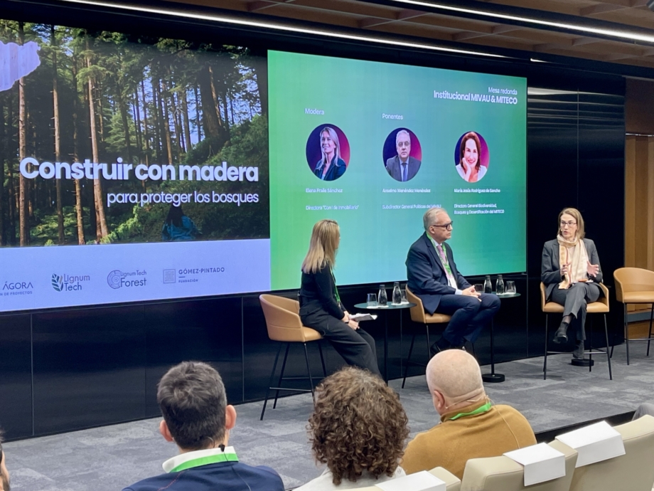 En un debate conducido por Elena Fraile Sánchez, Directora de “Con I de Inmobiliario”, Anselmo Menéndez, Subdirector General de Políticas del MIVAU, aboga por generar más demanda de construcción con madera. “El comienzo puede estar en la compra pública”, admitió.