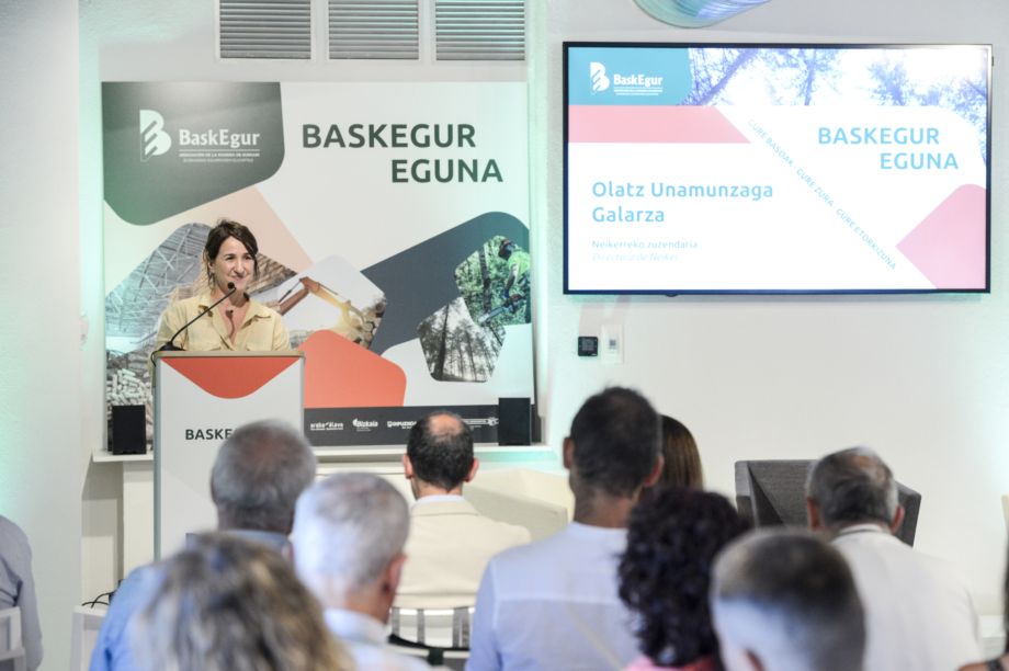 La nueva directora de NEIKER, Olatz Unamunzaga (en la foto principal), si bien reconoce ser “bastante nueva” en el sector forestal, reafirmó en el Baskegur Eguna 2025 el compromiso de la institución con la investigación en este ámbito. “Para abordar los retos que tiene el sector son fundamentales la investigación y, sobre todo, la transferencia”, expresó en su breve discurso.