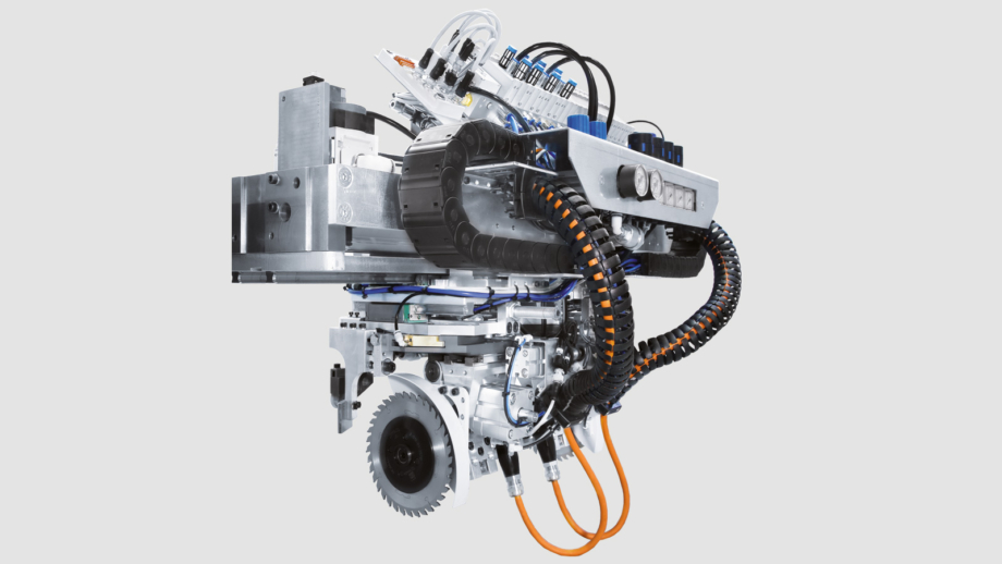 La máquina también cuenta con un cargador de 2 ranuras que se puede equipar automáticamente con hasta tres unidades para puntos débiles de los cantos, una unidad de corte suave SK25 con una profundidad de corte de hasta 35 mm, una unidad de precorte BF20 y un cambio automático de 2 radios con la unidad de fresado fino doble PF20. La máquina también cuenta con una recortadora de perfiles FF32, un rascador de perfiles PN20 para perfiles de moldeado suave, un acabado con un rascador de juntas encoladas FA21, una unidad de pulido y una unidad de calentamiento para blanqueamiento por tensión.